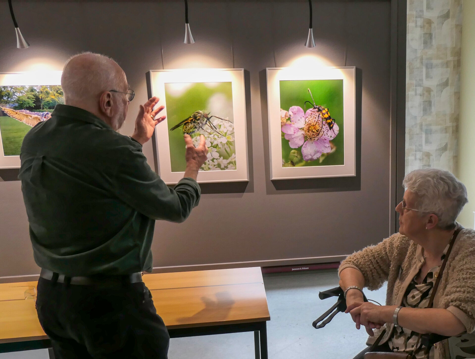 Doorlopend kwamen er bezoekers binnen en gingen de aanwezige fotografen in gesprek met hen. Beantwoorden diverse vragen en ontvingen regelmatig complimenten voor de tentoongestelde foto’s.